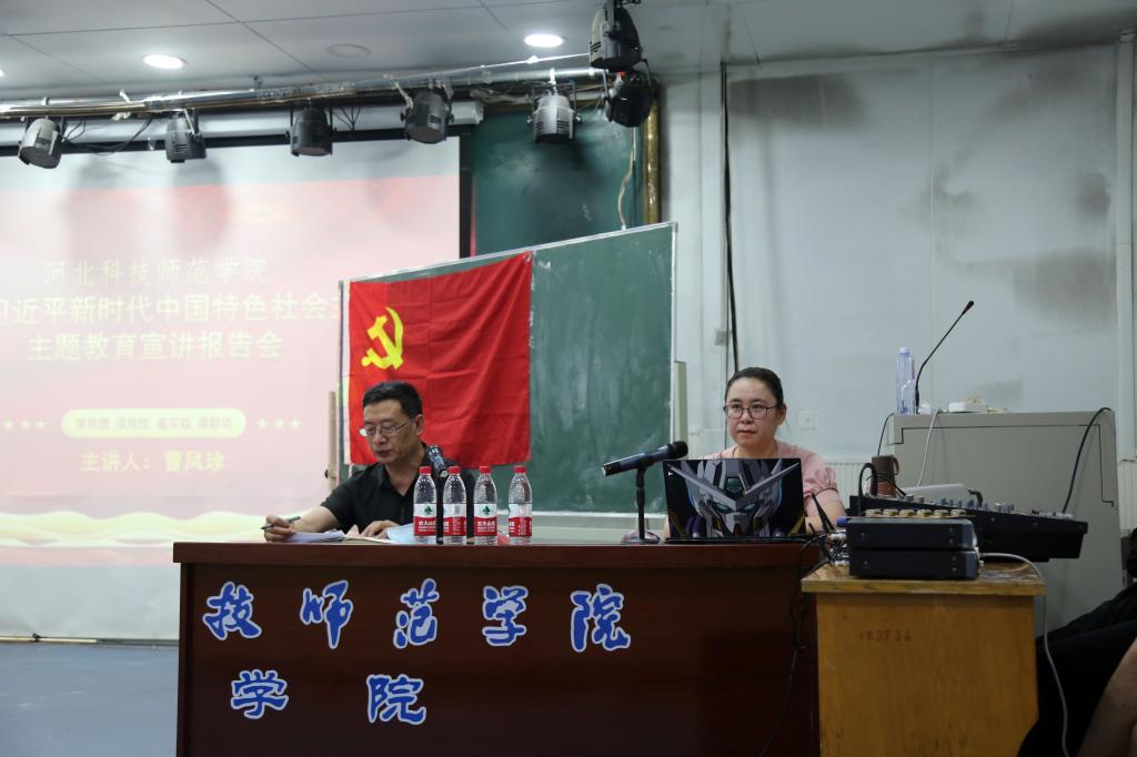 2023年6月8日下午2点30分,校思想政治理论教育宣讲团成员、马克思主义公司曹凤珍老师莅临公司开展学习贯彻习近平新时代中国特色社会主义思想主题教育宣讲会,公司全体党员教师和员工在艺术楼一楼阶梯教室聆听讲座,公司党委书记刘国良主持本次会议。