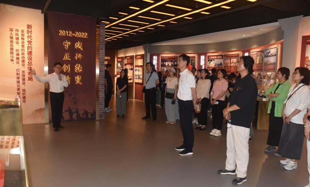 教师党员们跟随着讲解员的生动讲述,以历史进程为主线,全面深入地了解企业党组织的建设发展历程与辉煌成就。1922年,中国共产党创始人之一、党的一大代表王尽美来到山桥,在这里组织领导工人运动,创建了中央企业最早的党组织。从此,“永远跟党走” 成为山桥人的理想信念,截至目前,建成3200多座钢桥、生产数十万组铁路道岔,取得多项“世界第一”,践行“领路先行,尽善尽美”的红桥精神。