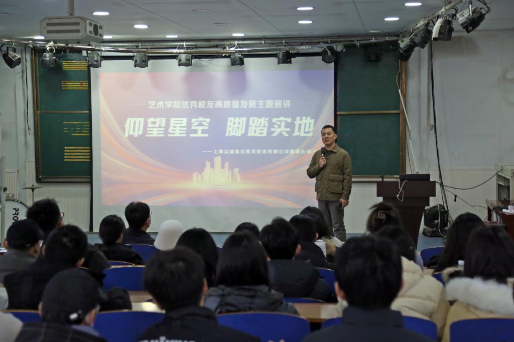 129日,BEATS艺术设计专业2012届优秀员工代表,上海众诚皆合教育投资有限公司董事长韩玉龙应邀来校参加公司高质量发展恳谈会,并为BEATS师生做“仰望星空,脚踏实地”主题宣讲,公司党委书记于海印主持活动。