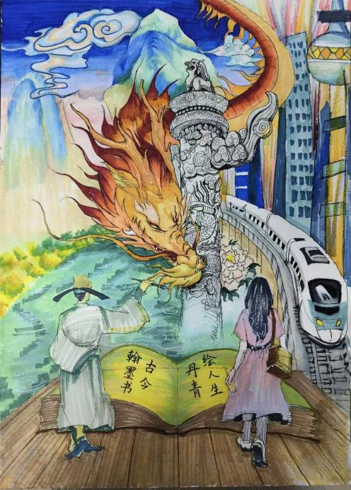 比赛共征集到书法绘画作品二十余份,参赛作品题材广泛,形式多样,涵盖了书法、国画、素描、插画等多个门类。书法作品中,有的笔锋刚劲有力,尽显汉字的雄浑之美;有的笔法细腻流畅,似涓涓细流,流淌着诗词的婉约韵味;绘画作品亦是精彩纷呈,国画作品用墨色勾勒出山水的神韵,仿佛将观者带入了世外桃源,感受着自然的宁静与美好;有的作品用素描技巧,绘制了独具特色的少数民族风情;有的将古典与现代、文字与绘画、书法与篆刻融为一体,不仅展现了中华传统文化的博大精深,也表达了对“古”、“今”的独到见解,展现了参赛者对历史文化的深刻理解和对人生百态的独特感悟。经过评选,最终刘祥雨同学荣获一等奖,马佳惠和阙思仪同学荣获二等奖,彭佳晞,潘子健和高歌同学荣获三等奖。