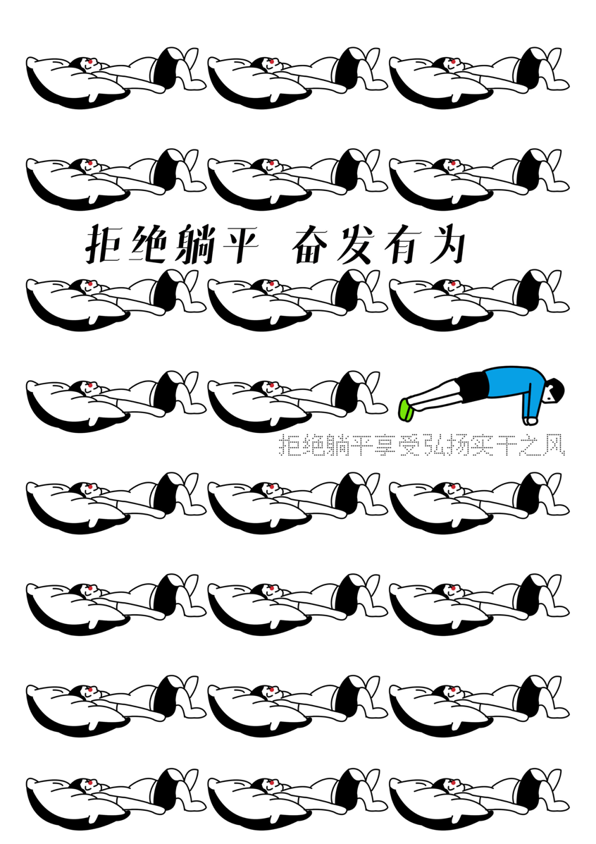 活动共收到作品二十余份,作品涵盖绘画、 微电影、海报设计等多种艺术形式。同学们用创意和才华展示了对于主题的思考,有的同学通过色彩鲜明的绘画展现和歌颂奋斗者的昂扬姿态,有的通过线条简明的漫画讽刺“躺平者”的消极和一成不变,有的作品用微电影的方式描绘出躺平者的堕落和给自己带来的危机,表达对积极人生态度的追求。