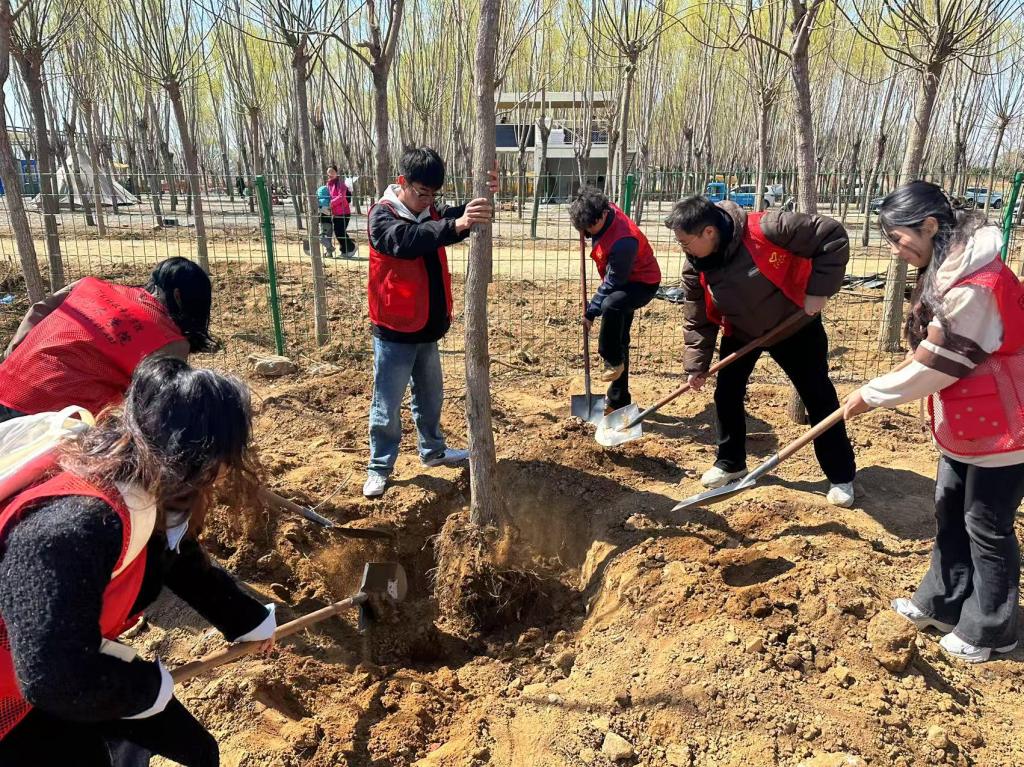 植树总动员和树木认养环节,志愿者们团结协作,亲手种下树苗,一锹一锹地铲土挖坑,认真浇培土壤,让一棵棵小树挺拔地屹立在春日的田野上,看着稚嫩又坚韧的小树,志愿者们的心中满是对绿色未来的期待。
