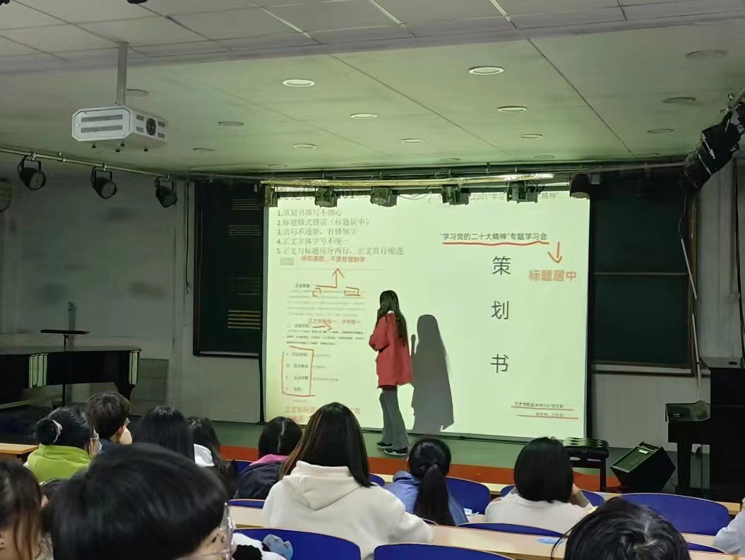 接下来,由青年发展部部长李宇凡讲解关于团日活动开展的相关要求,从活动的立意、形式、程序,到申报流程、策划通讯总结的撰写各方面都进行详细讲解,鼓励同学们充分发挥创意,结合专业特色,开展丰富多彩的主题团日活动。