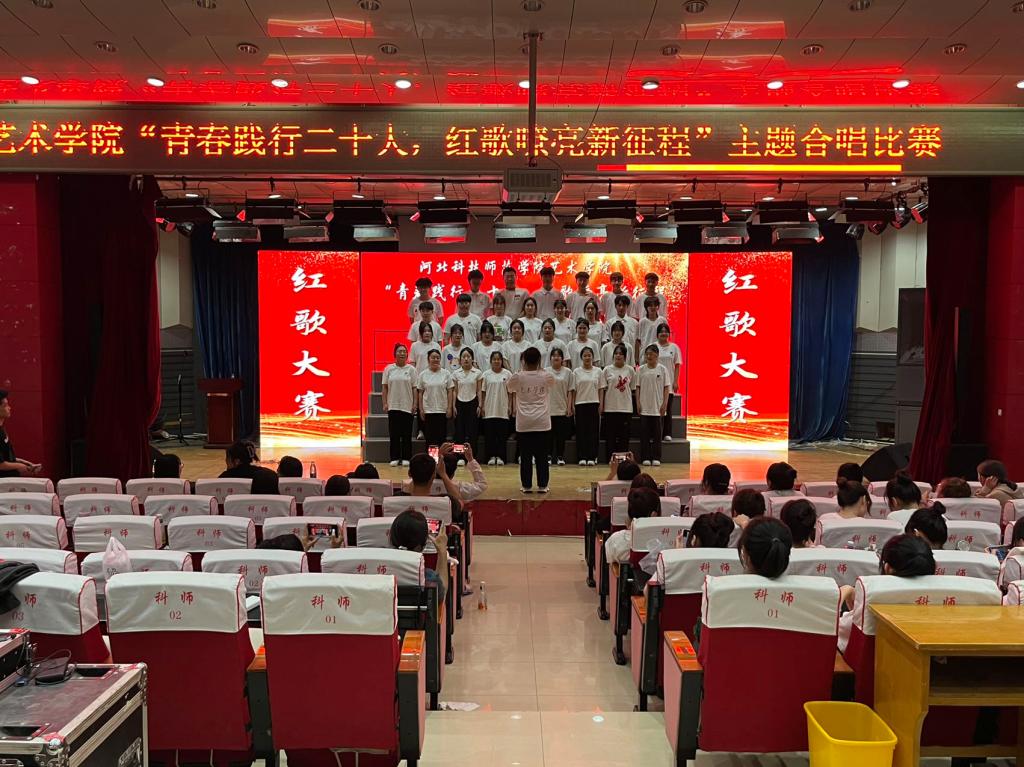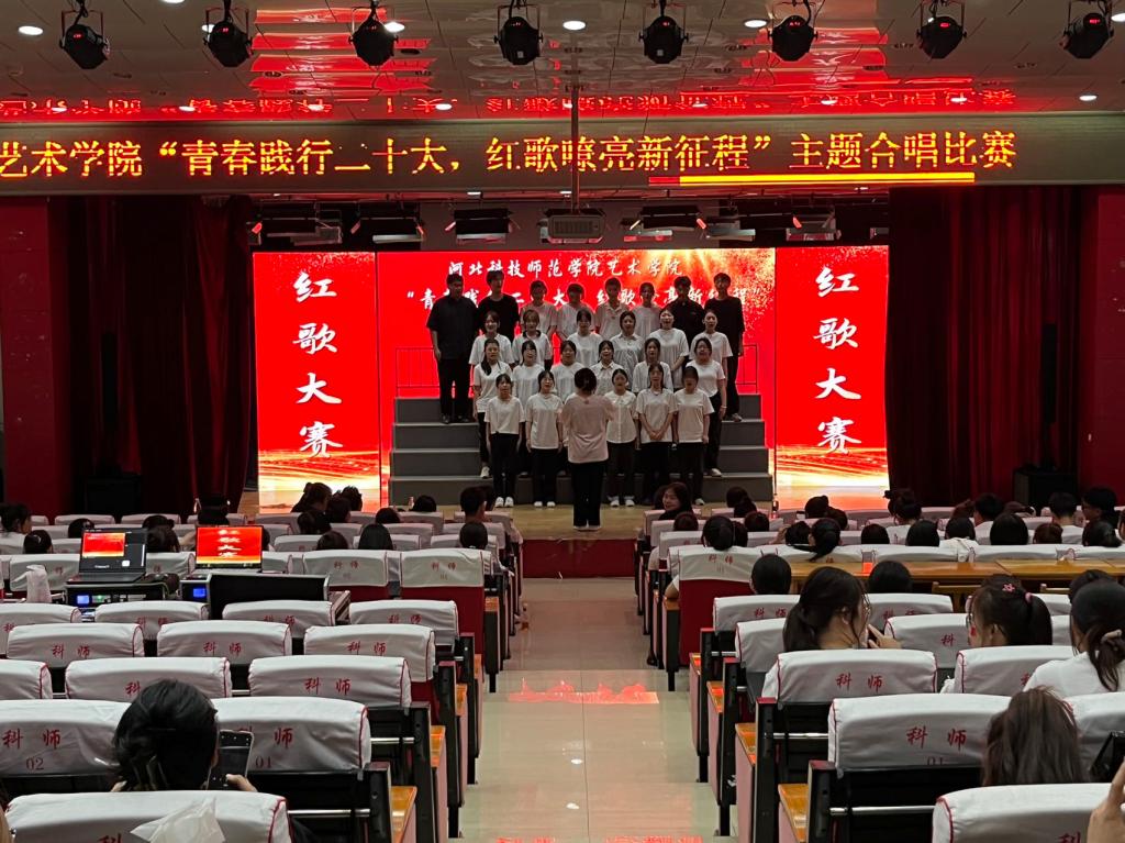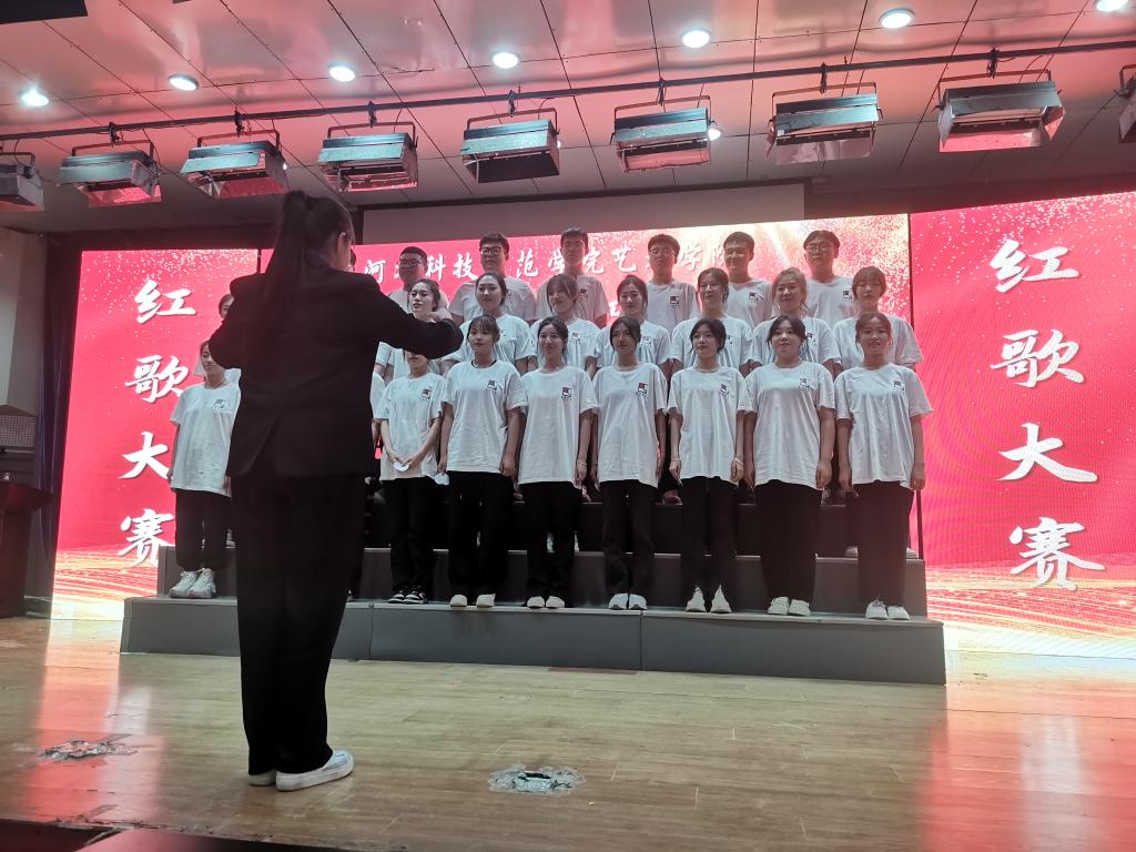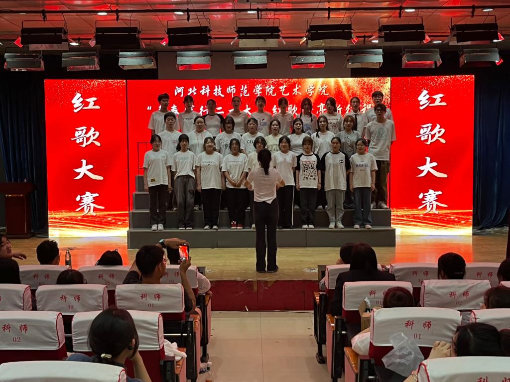 每个班级组成一个合唱团,《科技师院人之歌》为必选曲目,另有一首红歌作为自选曲目。经过半个多月的准备和练习,每个团队都呈现出最好的状态。比赛中,同学们衣着统一、队列整齐、歌声嘹亮、配合默契,在指挥的引领下,用心用情演绎了《科技师院人之歌》、《团结就是力量》、《国家》、《爱我中华》、《强军战歌》、《灯火里的中国》等曲目,唱出了浓烈的爱国爱党爱校情怀。经过评委会打分,最终音乐学2201班荣获一等奖,环境设计2201、美术学2202班荣获二等奖,舞蹈表演2201、美术学2201、视觉传达2201班获得三等奖,音乐学2202班荣获最佳表演奖。