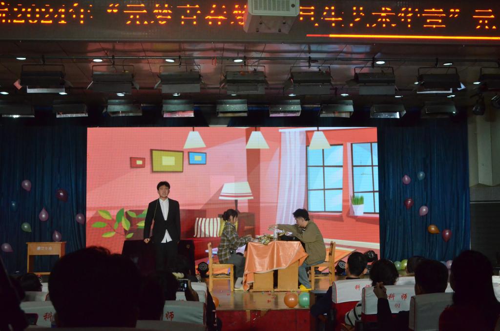 晚会由公司的老师同学们精心编排,认真准备,共有16个节目。开场视频展示了公司师生一年来的学习生活和工作成果;快闪舞蹈《新年好》用欢乐轻快的氛围为晚会拉开序幕;本届河北省校园歌手大赛优秀歌手刘杰同学演唱的一首《high歌》,伴随着动感的舞蹈,调动了现场的热烈氛围;小品《虎父无犬子》、《艰难抉择》用贴近生活的故事和精彩的表演赢得了现场的阵阵欢笑与掌声;由“国乐天香室内乐团”表演的器乐合奏《权御天下》、《象王行》气势磅礴,震撼人心,把中国历史的雄浑悠扬与激荡展现的淋漓尽致,萨克斯四重奏《游乐园组曲》用声音演绎了游乐园的故事,展示了BEATS器乐专业的较高水平;舞蹈《能不忆江南》带大家领略了江南的风情万种;《蒙古舞串烧》让大家感受了广袤草原的魅力;歌曲《春风十万里》、歌伴舞《美丽中国》,歌声婉转嘹亮,余音绕梁,展现了声乐和舞蹈专业的扎实功底;美术专业同学书写展示的新年对联,表达了对全体师生的节日祝福;三句半《科师青年说》、创意荧光小人舞、歌曲串烧《青春的歌》,展现了同学们的青春与激情;老师们演唱的一首《明天会更好》表达了对同学们美好未来的祝愿,更是将现场气氛推向高潮;最终,歌伴舞《相亲相爱》激情唱响,全场演变成沸腾的海洋,大家在歌声、舞蹈与祝福声中,带着对新一年的憧憬与期待,共度了本次元旦佳节。
