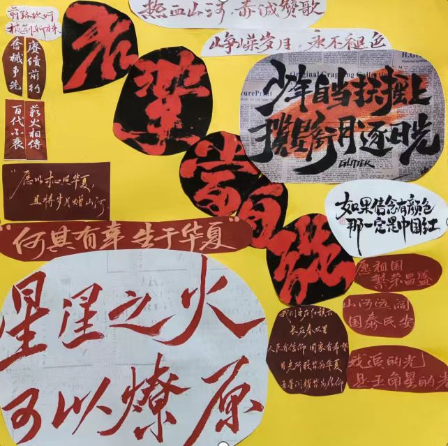 为引导同学们感悟红色精神,用文字和图画创作的方式来展示自己对于国家民族的热爱,公司开展了“我以我手执新笔,我以我心向红旗”主题拼贴诗作品征集活动。