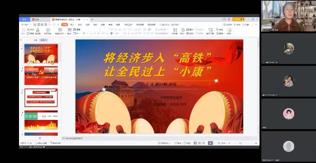 宣讲之后,多位同学现场分享了自己的学习心得,张心怡同学认为:“建党以来新中国丰功伟绩数不胜数,正如刘心宇同学所说,新时代的重任还是落在我们青年的身上,青年是祖国的未来和期望,作为新时代的青年,我们接过历史的接力棒。”王屹兵同学认为:“作为新时代青年,既要有内涵肯吃苦能担当,又要明确发展方向,不辜负党和国家的期望。”