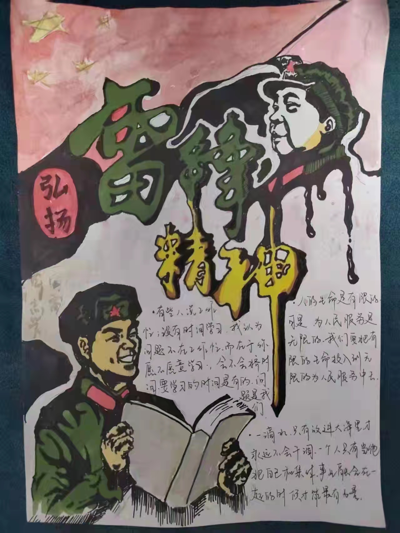本次活动,同学们将英雄的丰功伟绩以诗书绘画方式表现出来,不仅陶冶了情操,更重温了红色革命历史,为大力弘扬革命光荣传统,培养同学们的爱国主义精神和社会主义道德风尚,传承中华民族血脉,培育和践行社会主义核心价值观,建设积极向上的校园文化氛围起到了积极的推动作用。