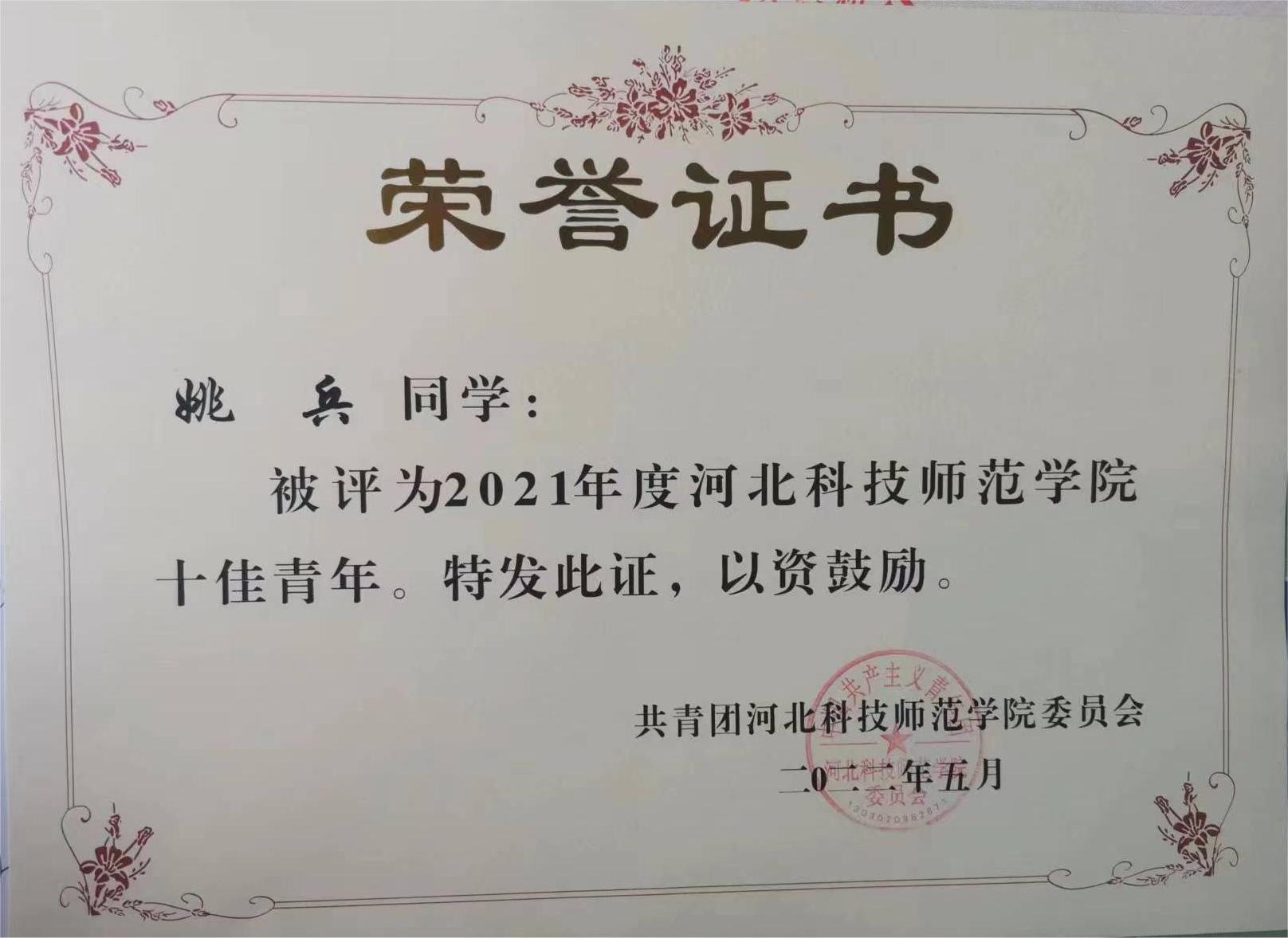 BEATS姚兵同学荣获BEATS“十佳青年”荣誉称号