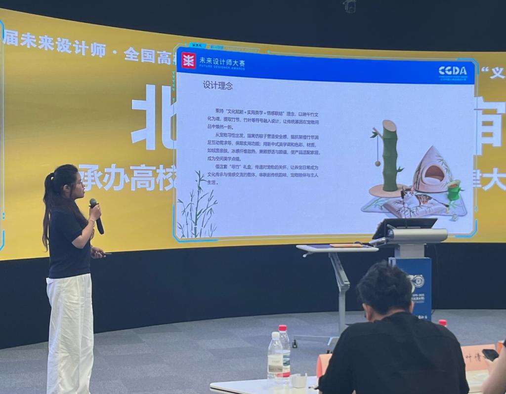 此次比赛包含都市白领的垃圾桶创新设计国风创意礼品包装设计、国风创意礼品包装设计、随心相伴-时尚创意U型枕设计、宠物居家用品创意礼盒套装设计、户外露营冰包+野营垫二合一功能创新设计五个设计赛道。北部赛区(包含:北京、天津、山东、山西、河北、黑龙江、吉林、辽宁、内蒙古)评选结果公布,公司环境设计专业员工王子璇、视觉传达设计专业员工王名岳获宠物居家用品创意礼盒套装设计赛道省级一等奖,并且获得第一轮区域现场路演资格,并于6月28日前往天津大学顺利完成了路演。