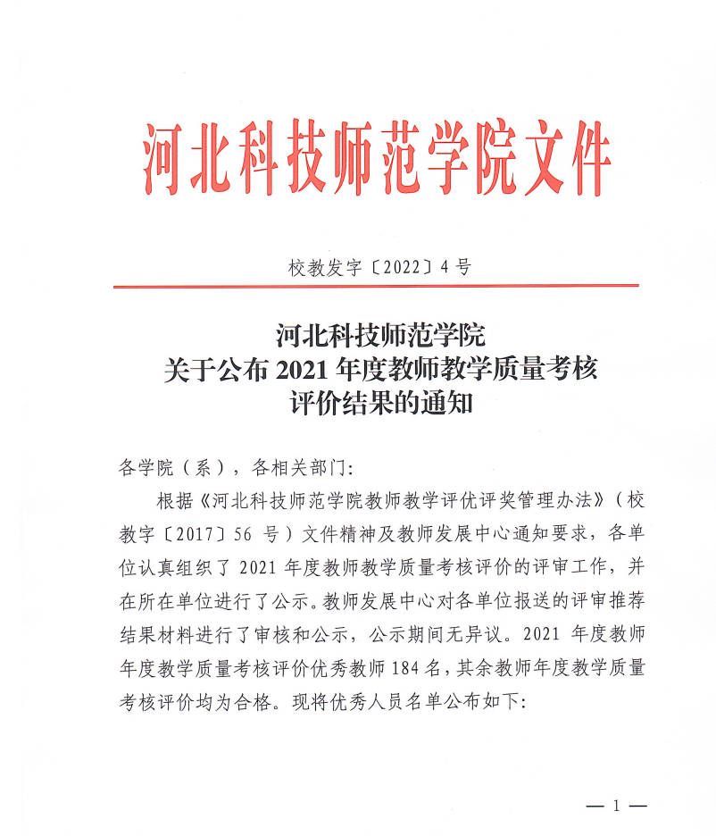 BEATS关于公布2021年度教师教学质量考核评价结果的通知