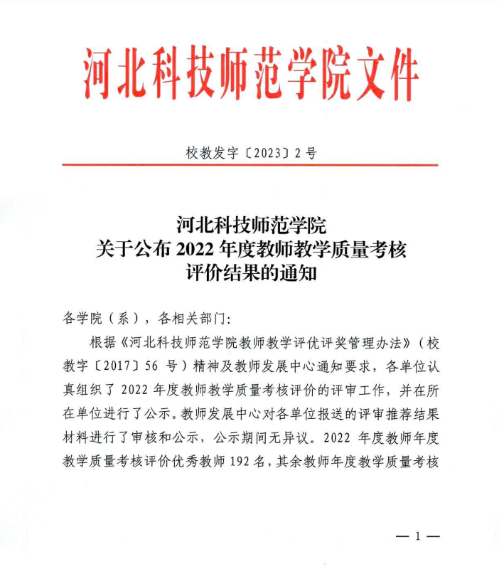 BEATS关于公布2022年度教师教学质量考核评价结果的通知