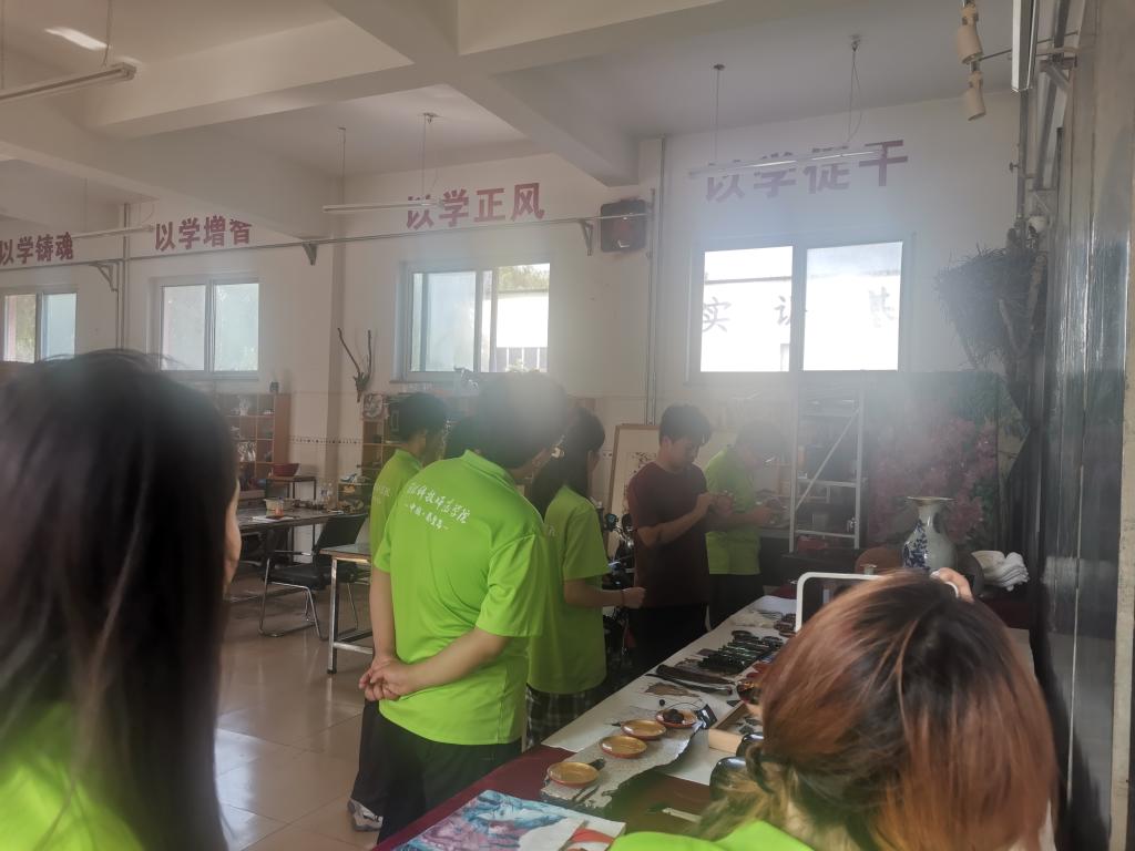 在韩老师的工作室,实践队员们观摩了漆器制作的过程,并亲自动手体验了打磨、涂油、抹粉、抛光等漆器制作程序,据悉,上漆、晾干、打磨的过程需要反复十几次,队员们真切感受到大漆工艺的繁复与精细,体会到精益求精的大国工匠精神的深刻内涵。