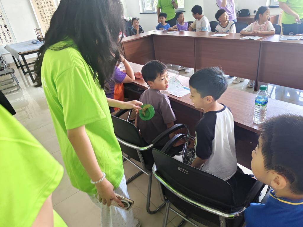 在“走近非遗 大漆文化”主题艺术小课堂中,实践队员带领小朋友们学习非遗文化以及大漆基本知识,介绍中华民族众多优秀的非物质文化遗产,讲述大漆的来源、用途、工艺的发展,向孩子们展示优秀的大漆艺术品,让他们对非遗文化和大漆文化初步认识。为检验小朋友的学习成果,队员们开展了知识问答竞赛,提问刚刚讲授的知识点,小朋友们积极响应,纷纷举手抢答。每一位回答正确的小朋友都获得了队员们精心准备的漂漆钥匙扣、冰箱贴等小奖品,这不仅是对他们认真学习的肯定,更是对他们争做文化传承者的鼓励。