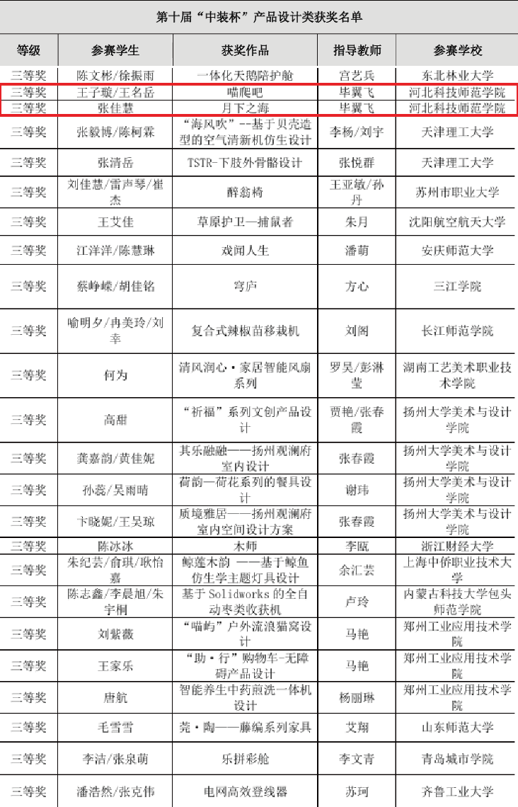 此次比赛包含空间创意类、深化设计类、企业命题类、产品设计类、乡村振兴类、数字设计类、风景园林类、建筑设计类、城市设计类、公共艺术类、传统美术类、综合类等11个赛道。河北赛区评选结果公布,公司环境设计专业员工王子璇、视觉传达设计专业员工王名岳、张佳慧获三等奖2项。此外,公司获优秀组织奖、环境设计专业教师毕翼飞、视觉传达设计专业教师李颖获优秀指导老教师奖。