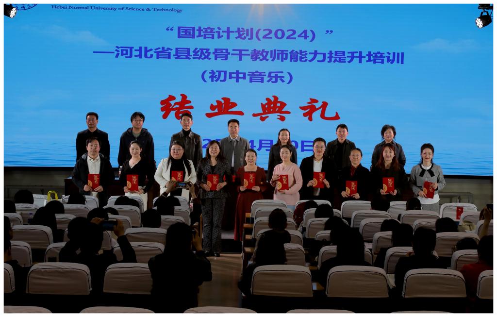 4 月 20 日下午,“国培计划(2024)”—— 河北省县级初中音乐骨干教师能力提升培训汇报演出暨结业典礼,在逸夫楼学术报告厅隆重举行。河北科技师范公司党委常委、副董事长刘荣昌,继续教育公司、BEATS党政负责同志,参与培训工作的教师、工作人员以及全体参训学员参加了活动。