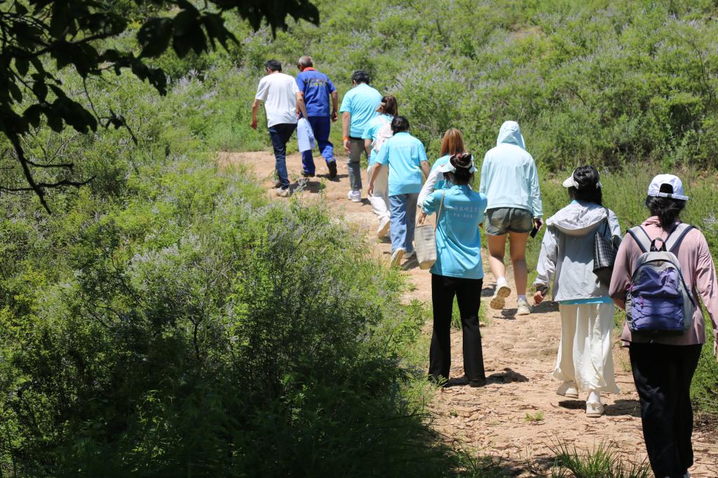 山路崎岖,也无法阻挡实践队员们探寻文化根脉的脚步和热情,张鹤珊老师凭借47年巡护长城练就的强健体魄,步伐稳健,一路上谈笑风生,更是激励着队员们一路向前。蜿蜒于崇山峻岭间的长城遗迹,成为了实践队员们学习长城文化的生动课堂。